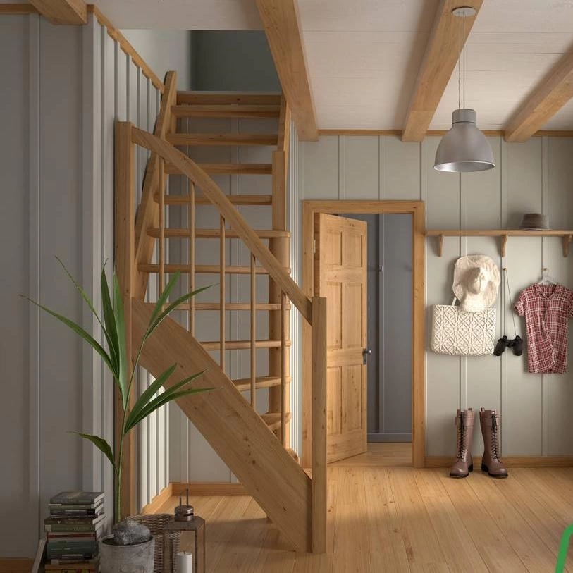 Деревянная чердачная лестница LWS изготовлена из древесины сосны и укомплектована утепленной крышкой, облицованной ДВП бежевого цвета (толщина крышки люка с утеплителем – 36 мм). Крышка люка крепится металлическими шарнирами, которые позволяют регулировать длину лестницы (макс. 40 мм). Для транспортировки лестница снижается в пазах, перед использованием необходимо отодвинуть лестничный марш от плиты люка.