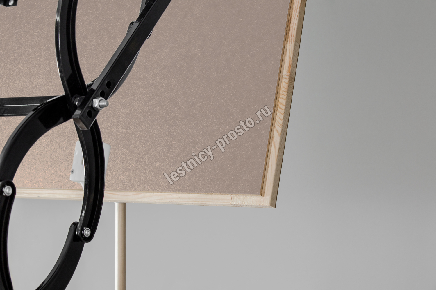 Лестница чердачная раздвижная ножничного типа, работает по принципу сжатия. Термоизоляционная крышка типа“сэндвич “, толщиной 26мм, утеплена пенопластом , облицована с двух сторон ДВП древесного цвета. Лестница предназначена для условий, когда чердак утеплен и не требует дополнительной теплоизоляции. Короб деревянный высотой 140мм. по периметру проходит уплотнитель.