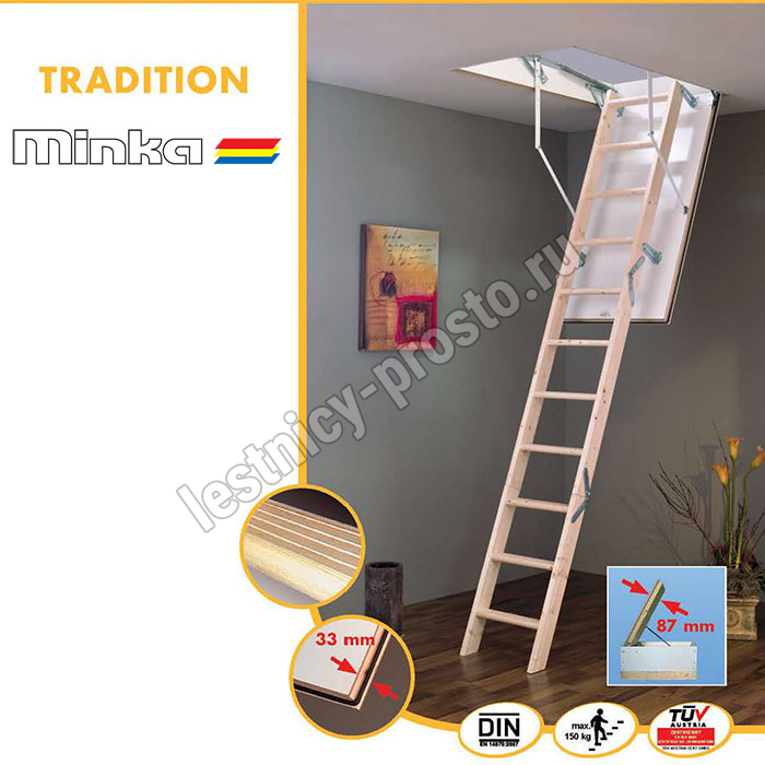 | Чердачная складная лестница MINKA TRADITION 70×110 см, h-280 см |