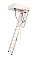 Лестница EI45 POLAR отличается тройным уплотнением, включая одинарное противопожарное уплотнение и люк толщиной 86 мм. Крышка люка утеплена пенопластом, облицована с двух сторон ДСП белого цвета.
