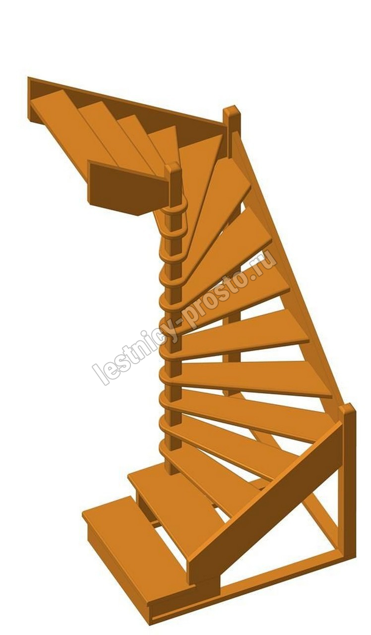 Деревянная межэтажная лестница ЛЕС-01 2915-3075 проем 1630-1370, Бук