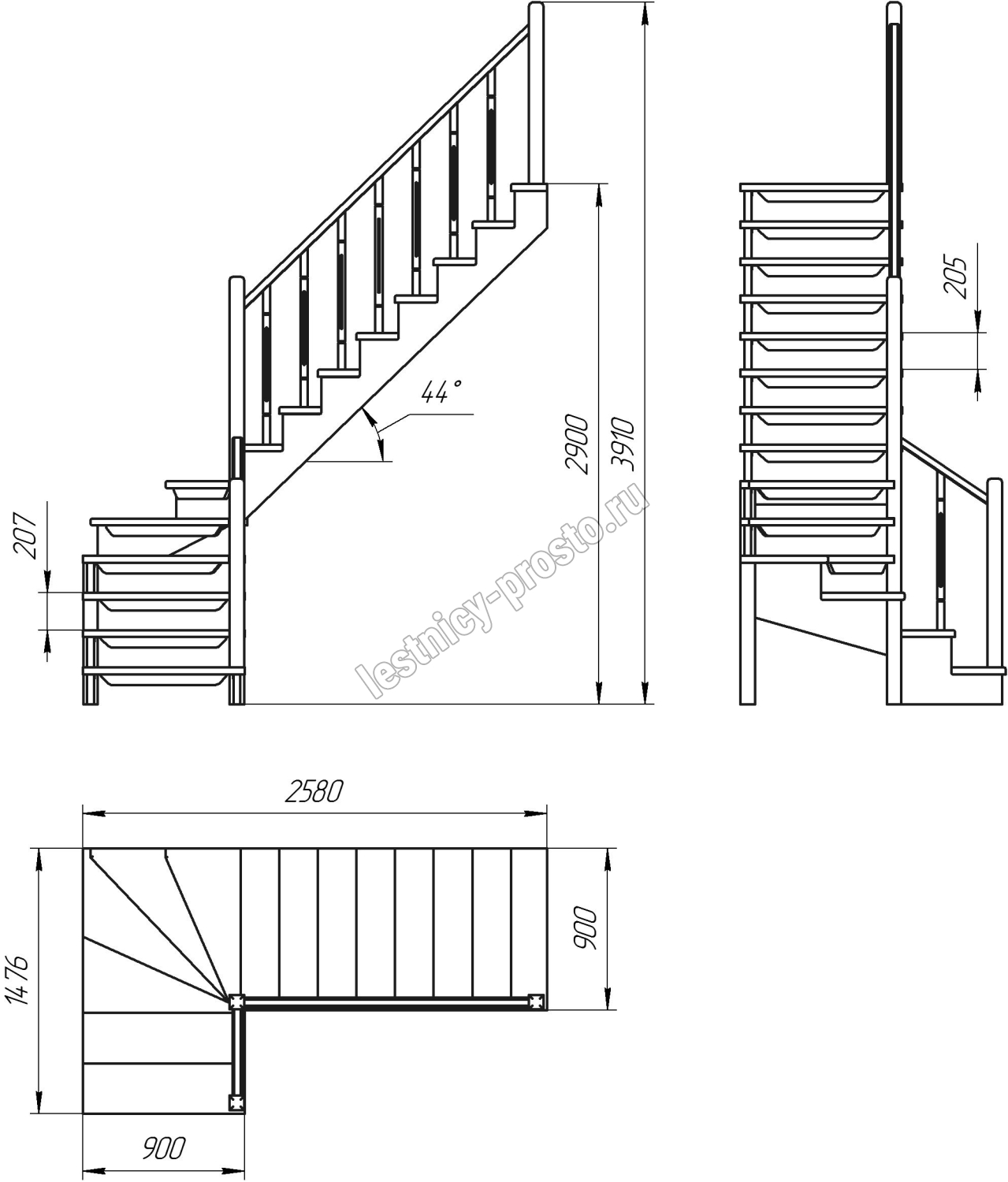 Высота лестницы 2900 мм