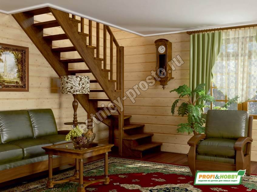 | Лестница из сосны К-001М/1 с подступёнками |