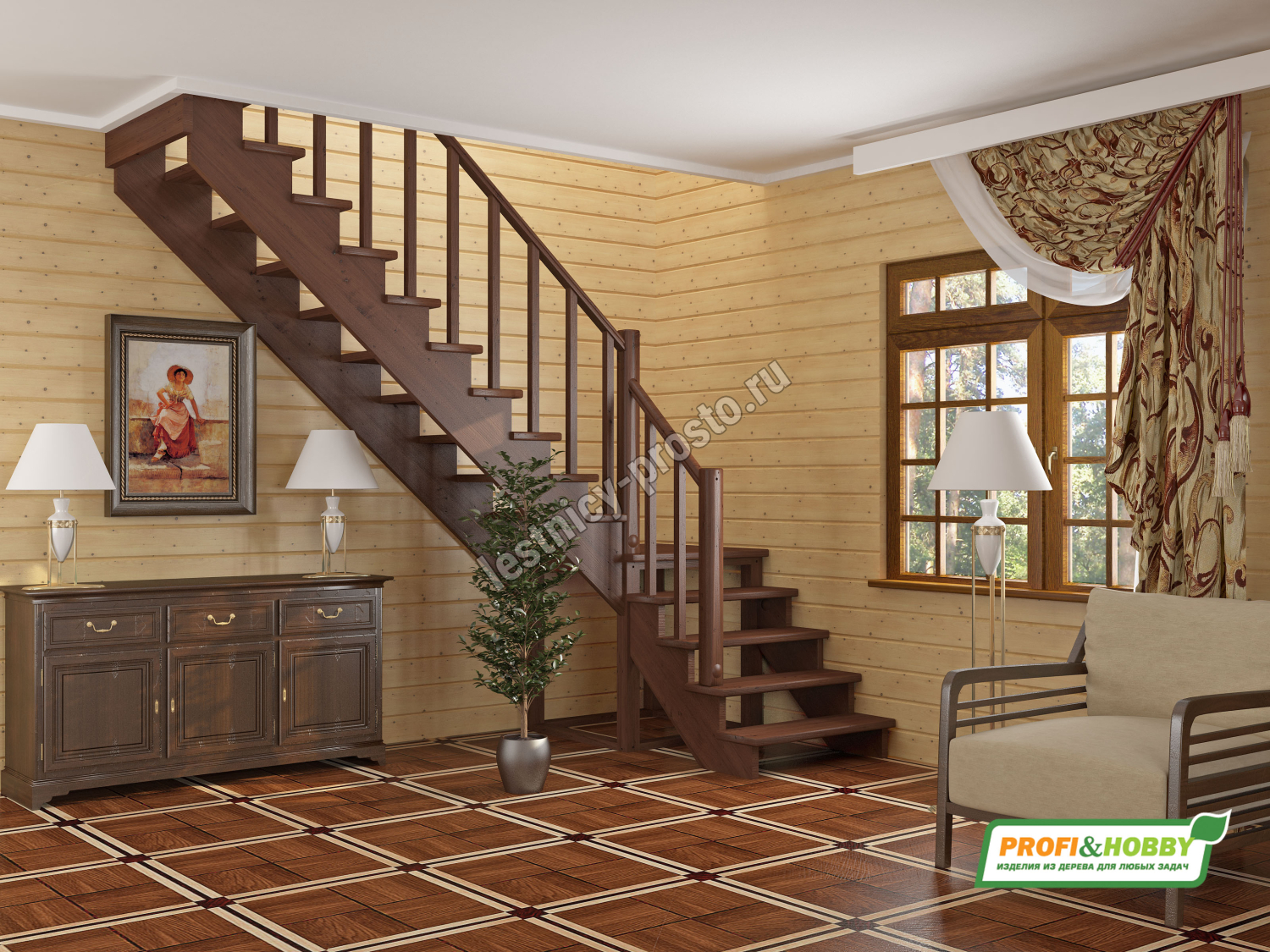 | Лестница из сосны К-002М/1 с подступёнками под покраску |