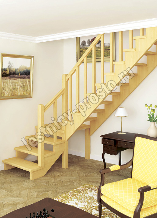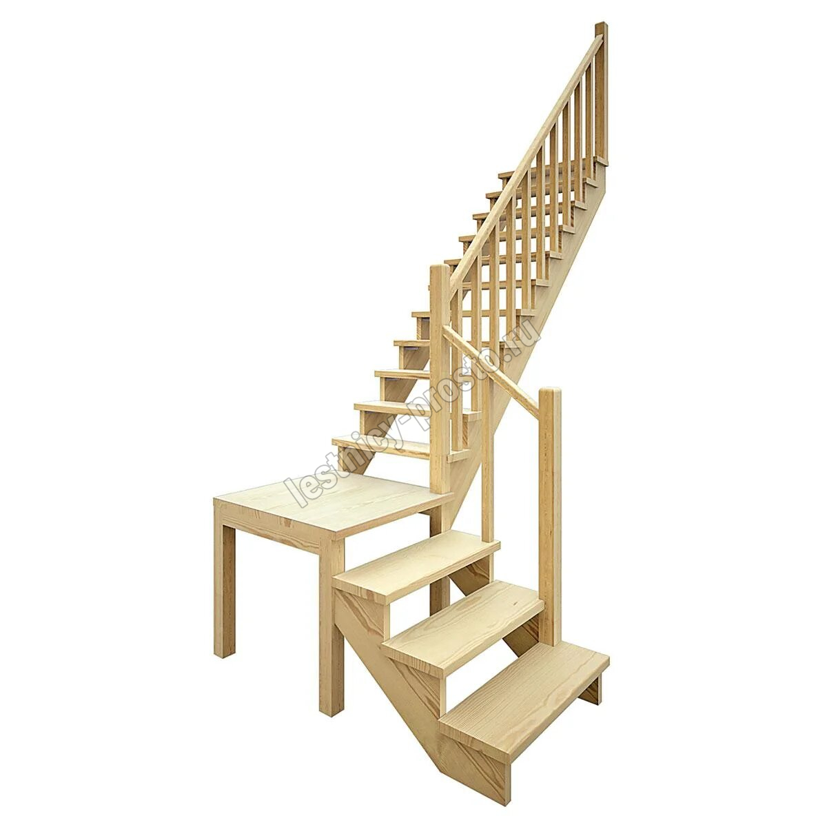 | Деревянная межэтажная лестница ЛЕС-08, Сосна с подступенкой |