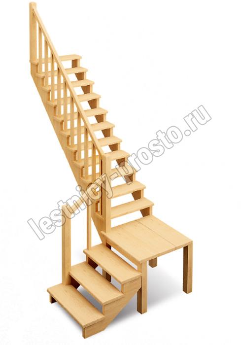 | Деревянная межэтажная лестница ЛЕС-08, Лиственница с подступенкой |