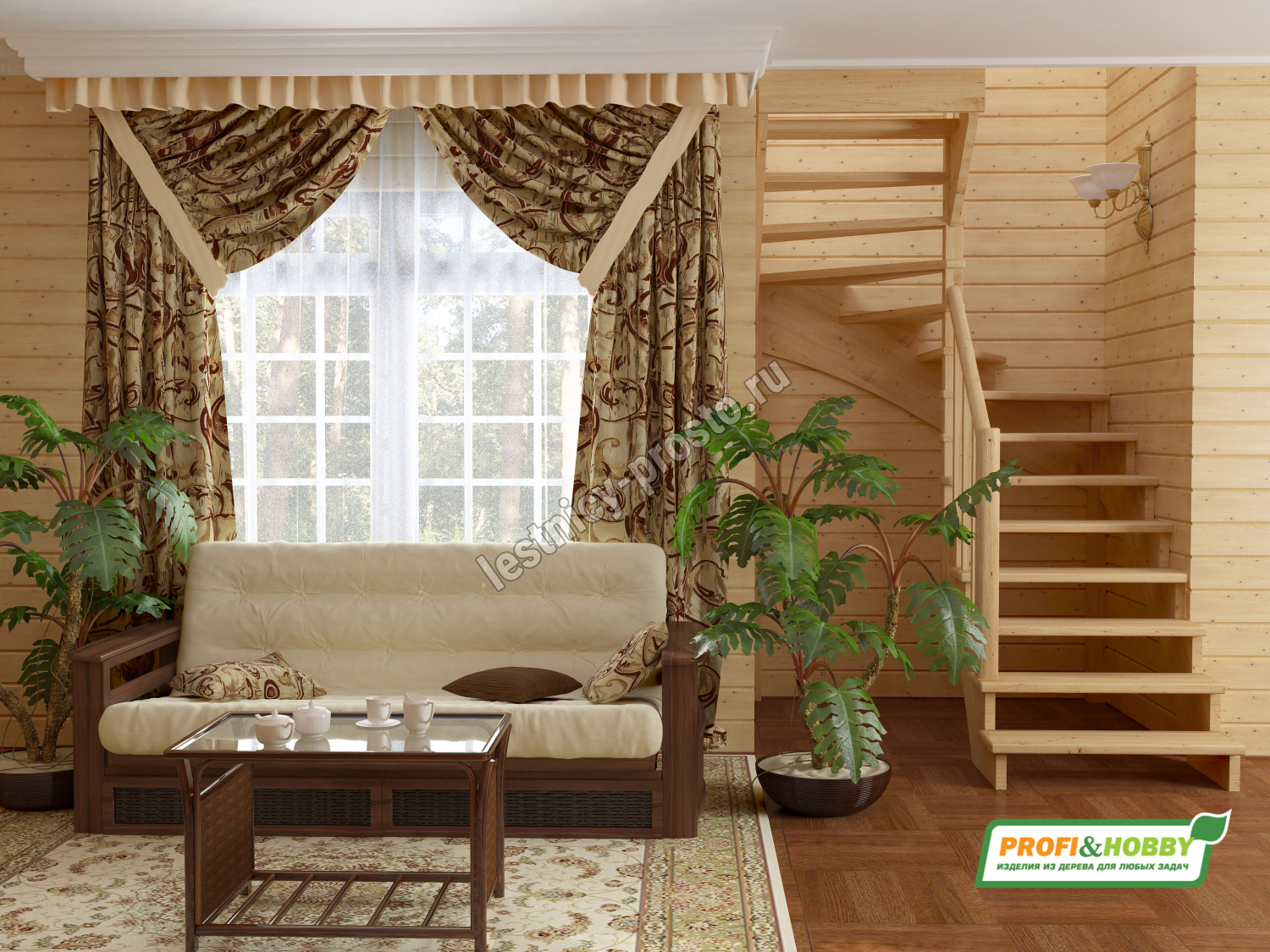 Ступени и поручень изготовлены из бука, остальные элементы лестницы из сосны.