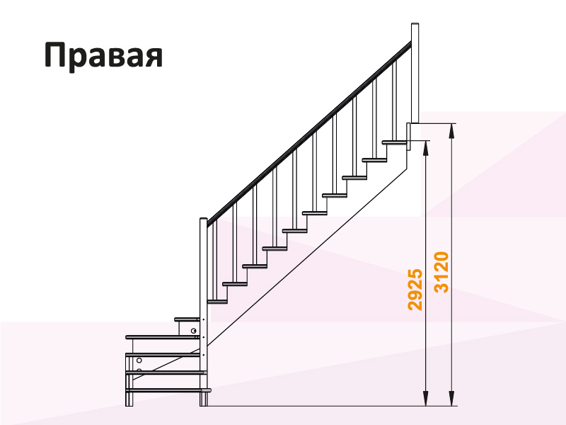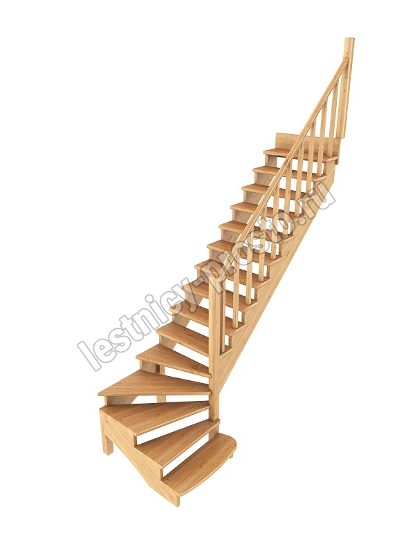 Ступени и поручень лестницы изготовлены из дуба, остальные элементы из сосны. Возможно изготовление модели полностью из дуба. Базовый комплект включает в себя деревянные элементы лестницы и ограждения без какого-либо покрытия. Вы можете заказать у нас покраску лестницы в цвета, отвечающие особенностям вашего помещения.