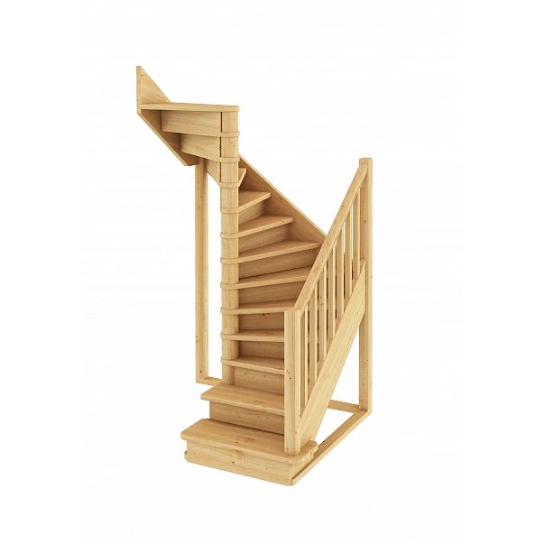 Базовый комплект включает в себя деревянные элементы лестницы и ограждения без какого-либо покрытия.