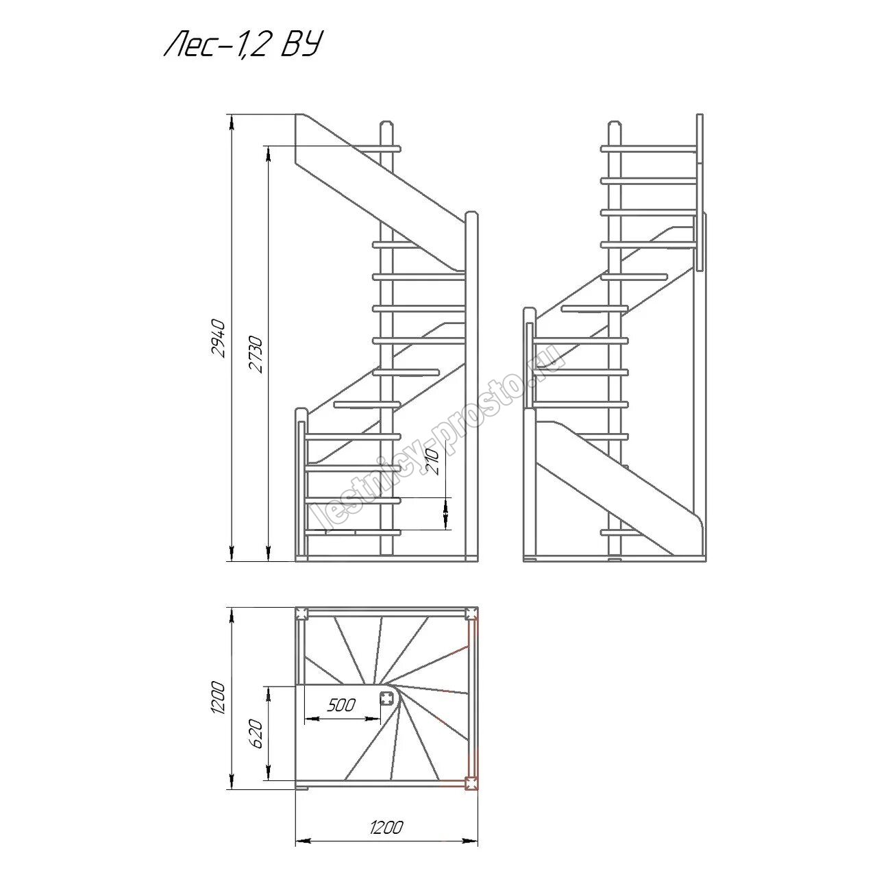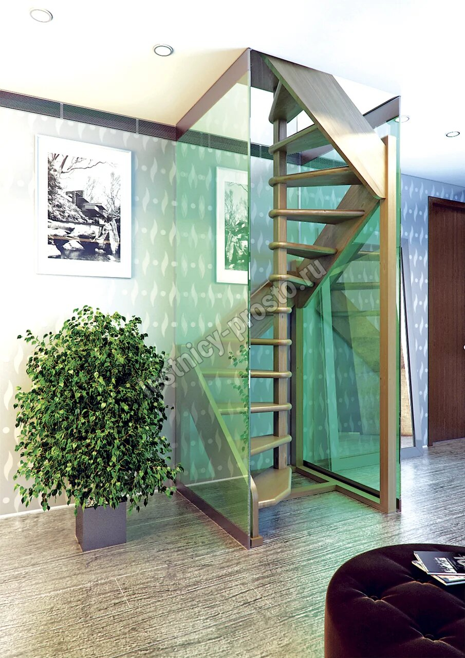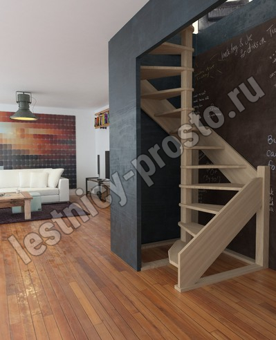 | Деревянная межэтажная лестница ЛЕС-1,2ВУ, Лиственница |