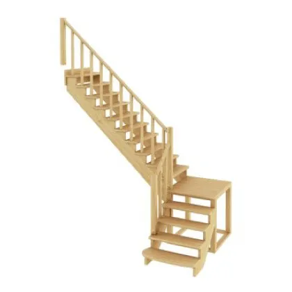 Лестница дополнительно может быть укомплектована подступенками из сосны или ясеня (покупаются отдельно) Базовый комплект включает в себя деревянные элементы лестницы и ограждения без какого-либо покрытия.