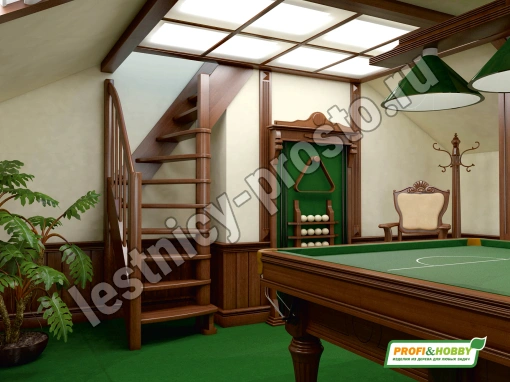Ступени и поручень лестницы изготовлены из ясень, остальные элементы из сосны.