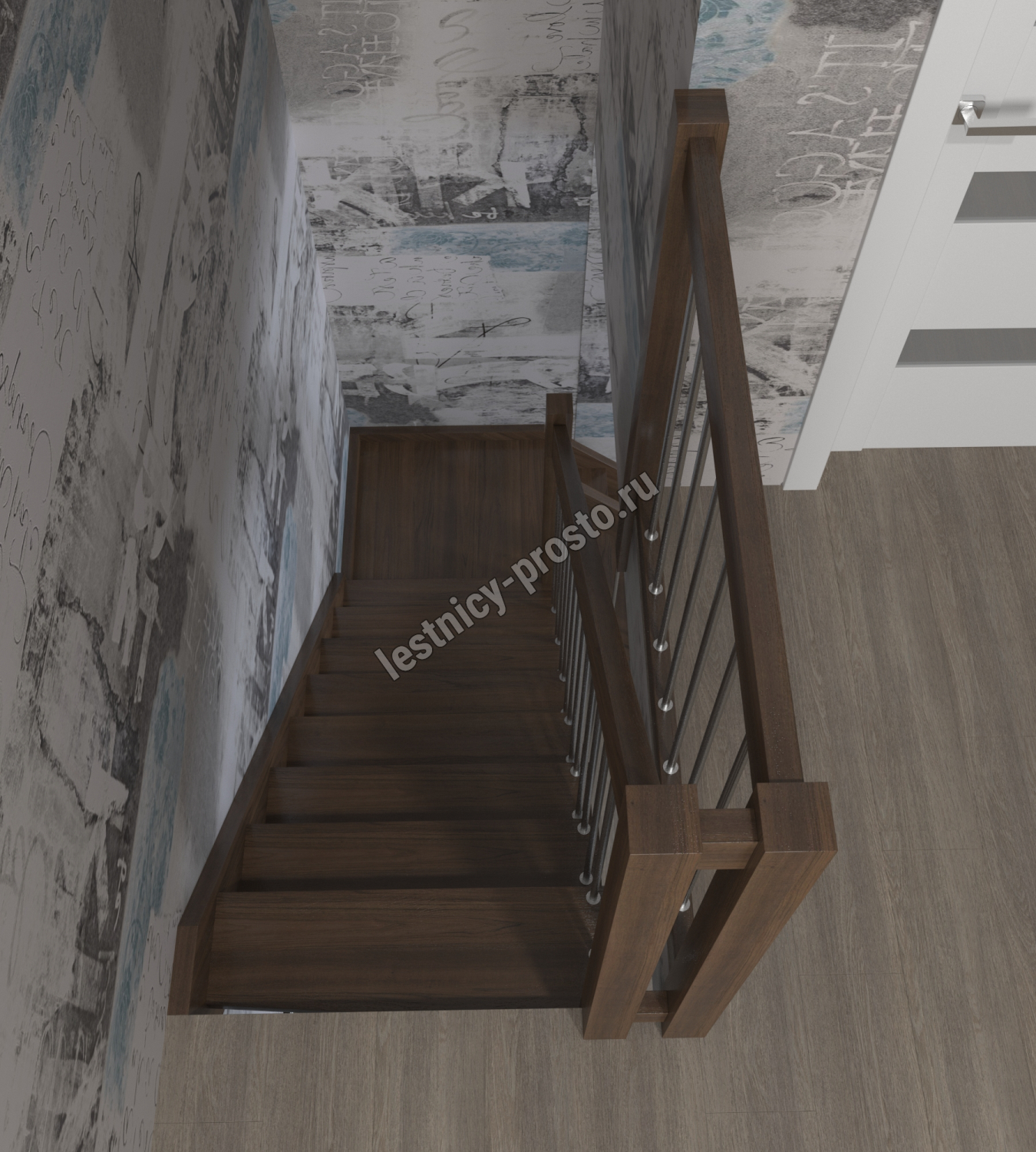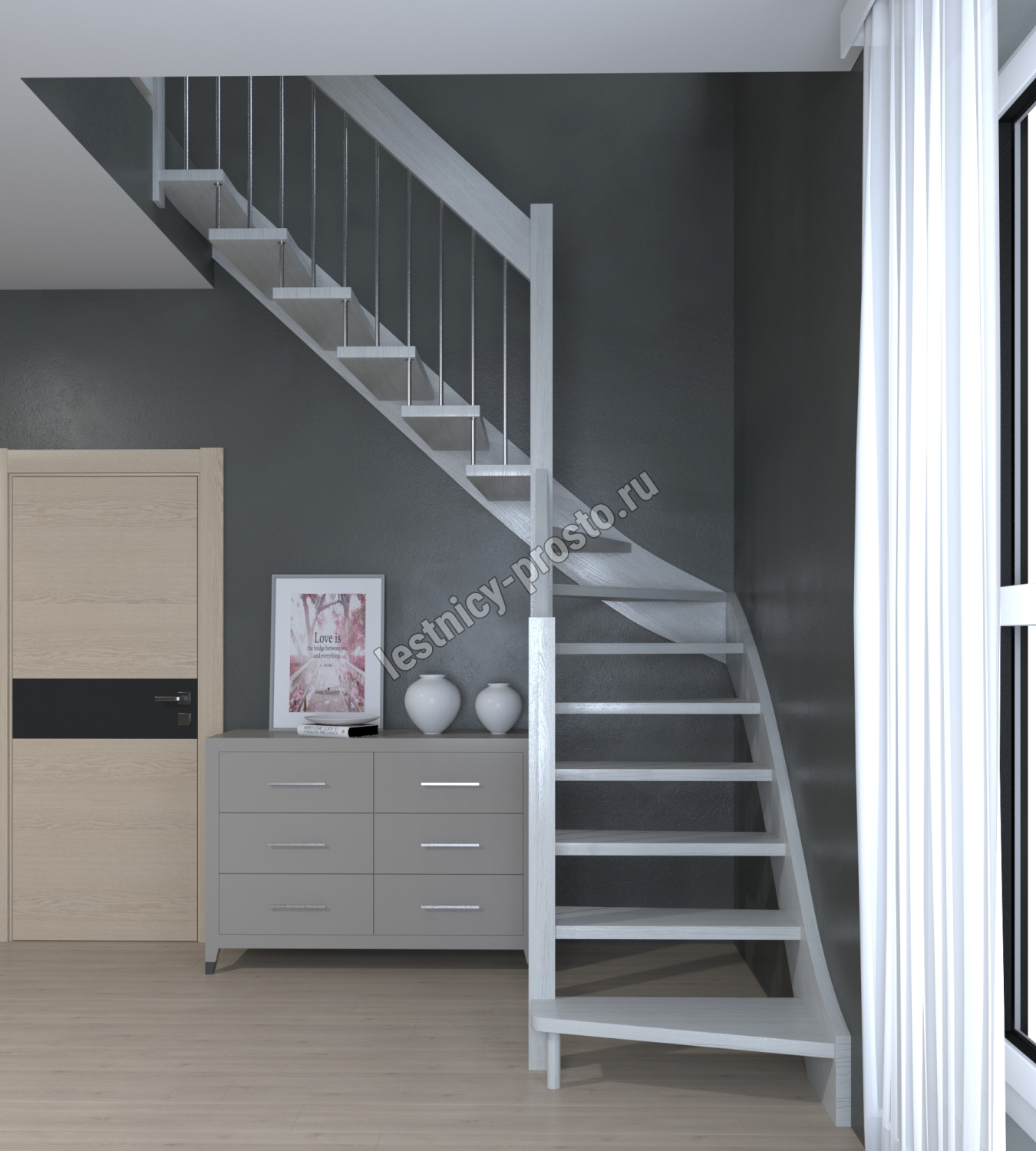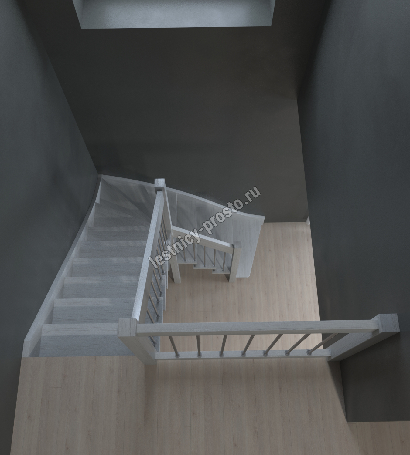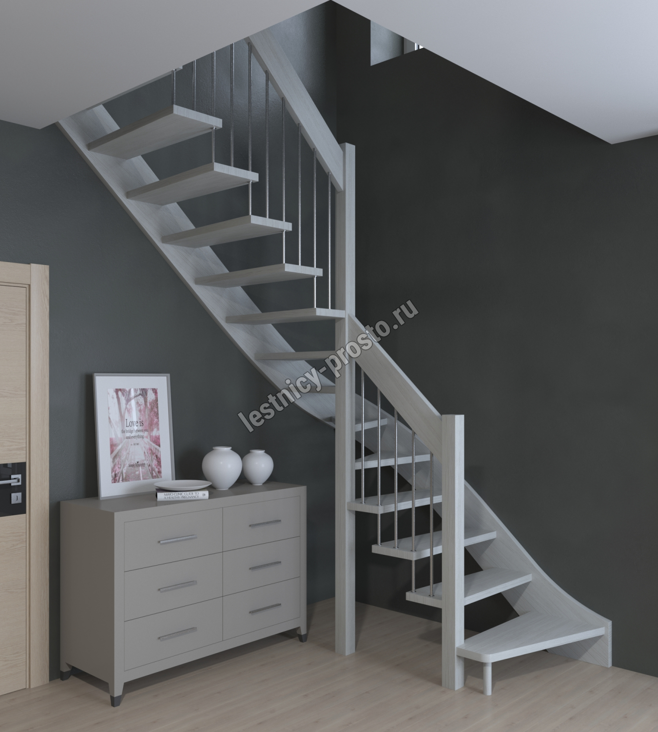 Лестница Prosto Console г-образная забежная дуб, h270 см (11 ступеней)