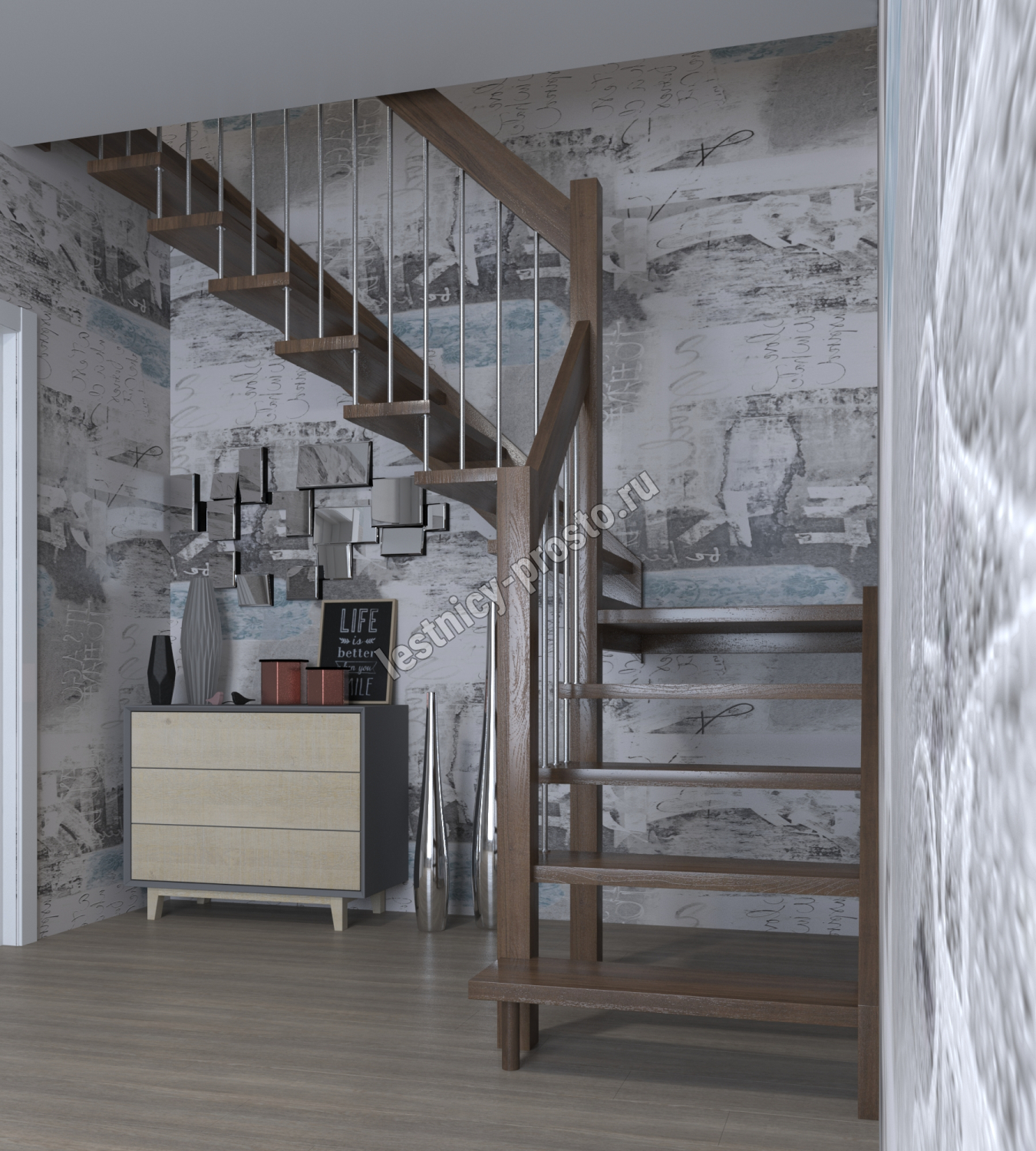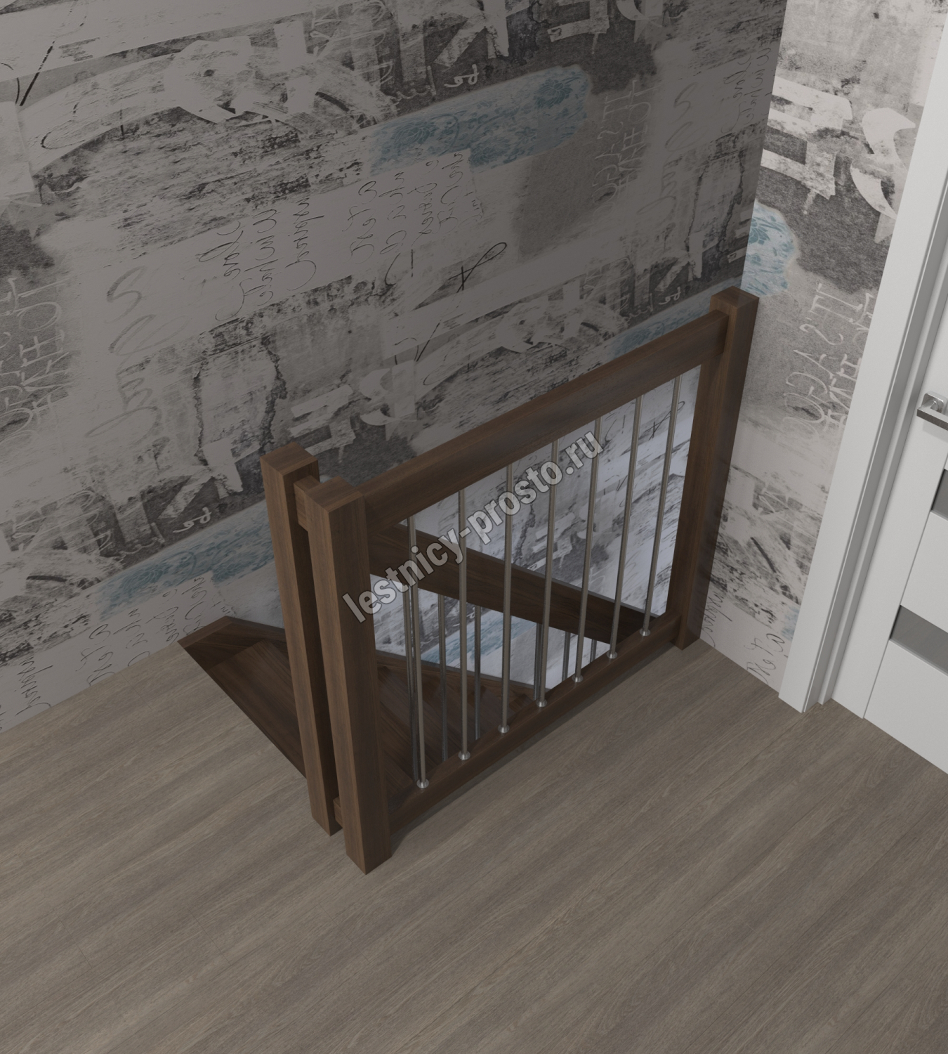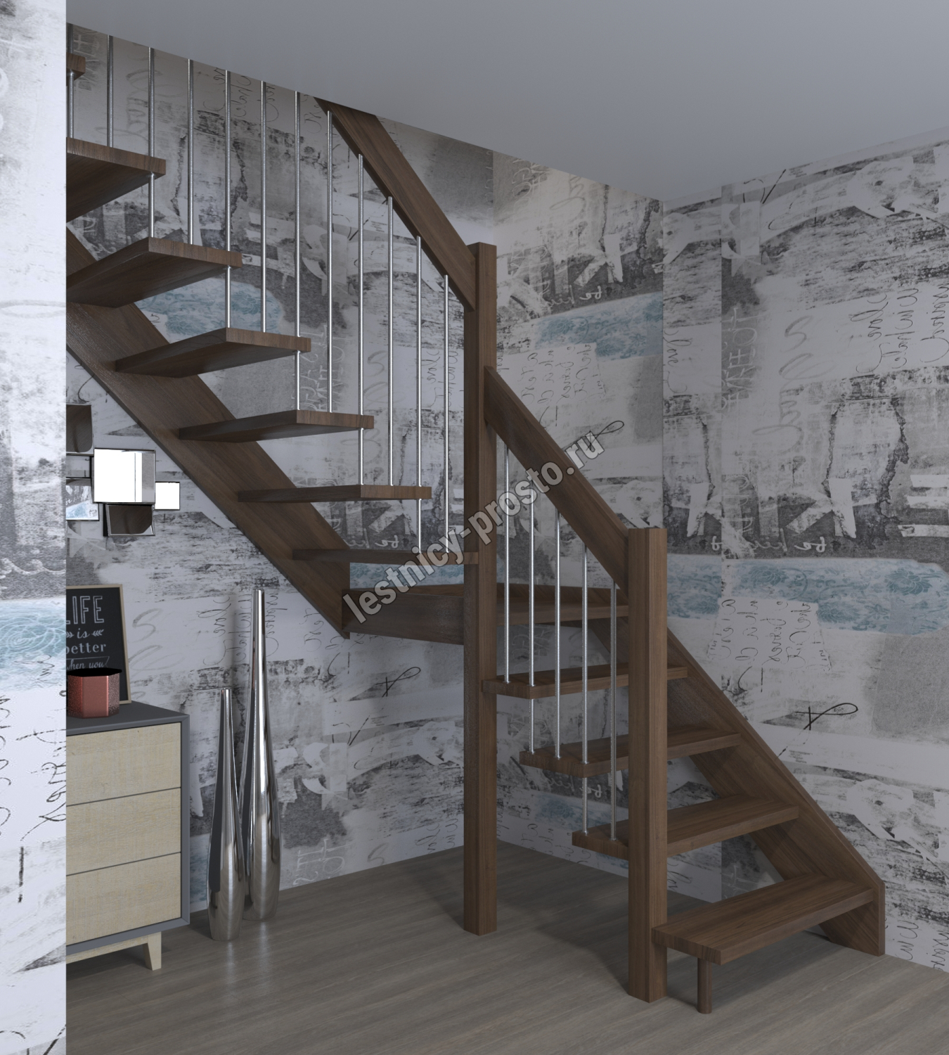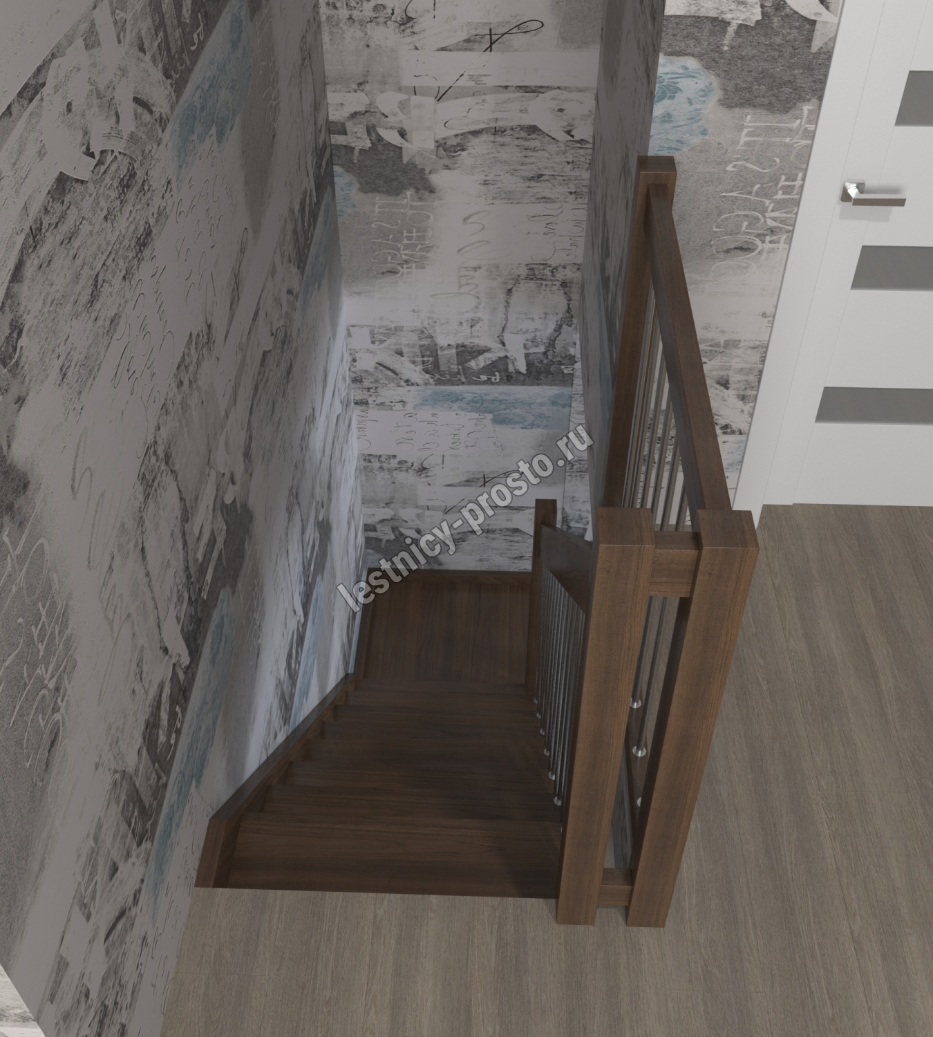 Лестница Prosto Console г-образная забежная дуб, h270 см (11 ступеней)