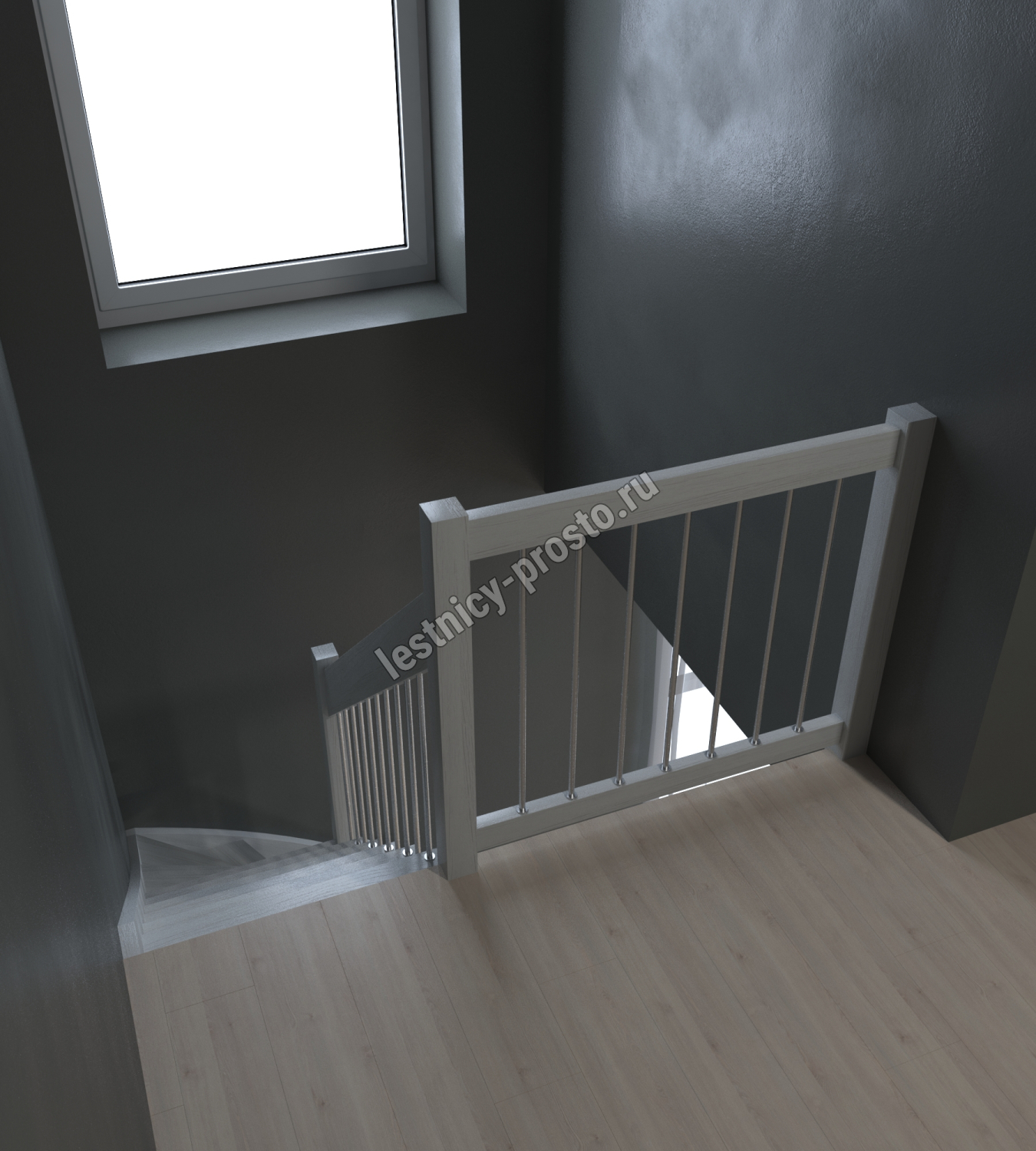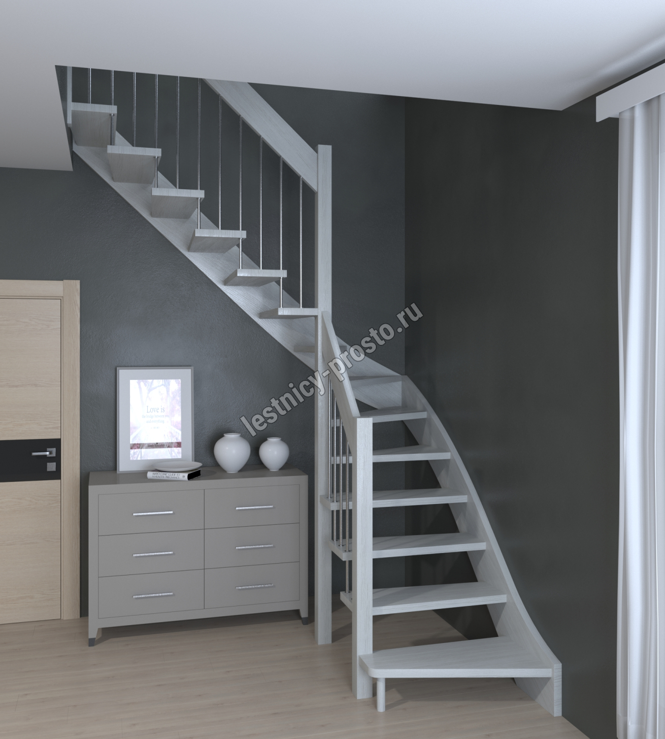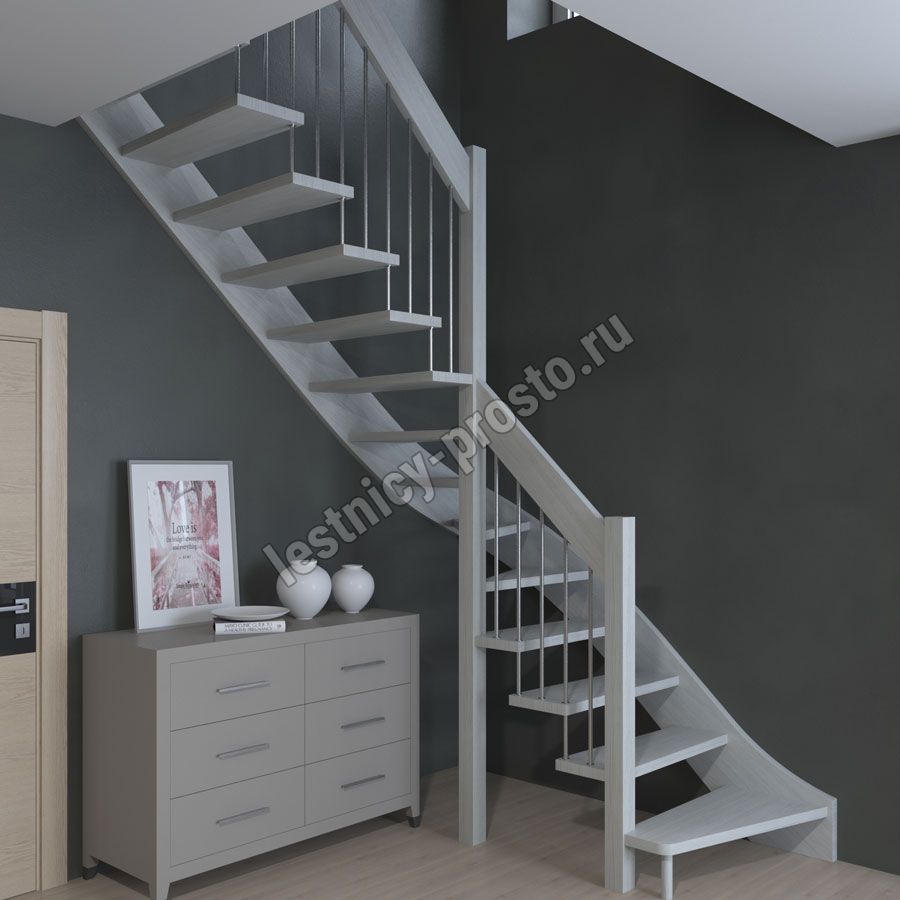 Лестница Prosto Console г-образная забежная сосна, h292.5 см (12 ступеней)