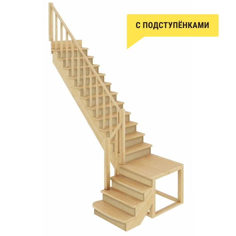 Надёжная современная лестница выполнена по немецкой технологии. Стоимость указана для лестницы с ограждением (с одной стороны); Поставляется в разобранном виде, в комплекте необходимый крепёж; Лестницу можно собрать самостоятельно; Так же, вы можете заказать услугу монтажа нашими специалистами; 4 вида породы дерева для изготовления лестницы: сосна, бук, ясень, дуб; возможна комбинированная лестница: из сосны (ступени бук, ясень, дуб); Деревянные элементы без какого-либо покрытия, отшлифованы, готовы к покраске. За дополнительную плату, вы можете изменить любые параметры, а именно: увеличить глубину ступени; увеличить ширину марша до 900 мм. и выше; заказать подступенки к лестнице; заказать отделку перекрытия (между 1-м и 2-м этажами); изготовить дополнительный промежуточный марш; заказать ограждение 2-го этажа; покраска в любой цвет или несколько цветов или покрытие защитными средствами; дополнение балясины из нержавеющей стали деревянными элементами; покраска балясин из нержавеющей стали порошковой краской в цвет RAL.