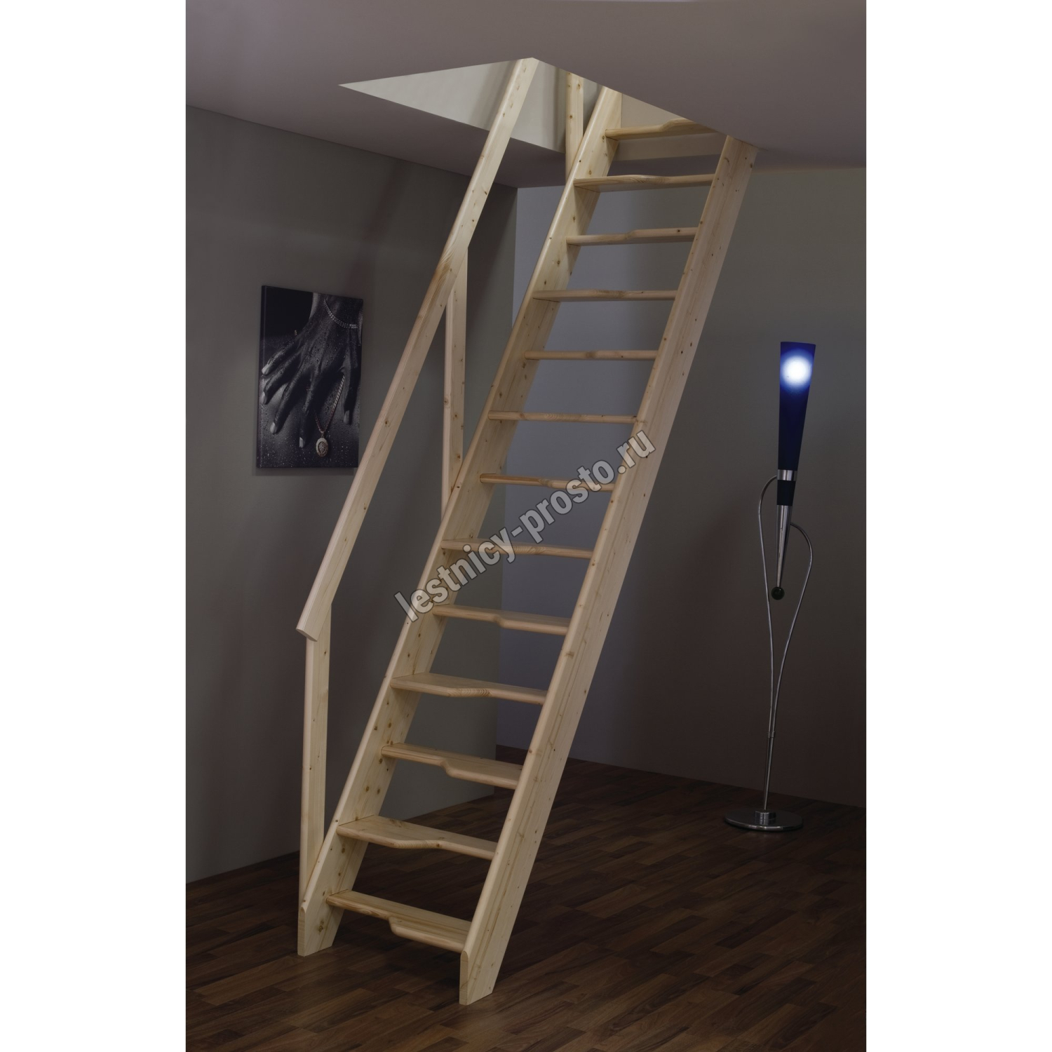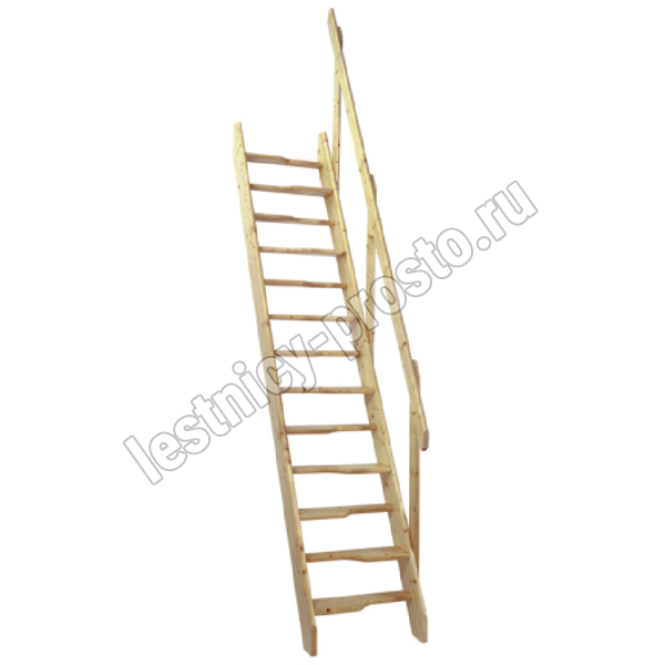 Мансардная лестница из ели М-011у с поручнем