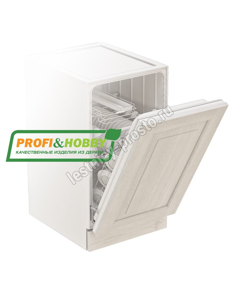 Фасад для посудомоечной машины изготовлен из 100% массива дерева, без шпона и без МДФ/ДСП.