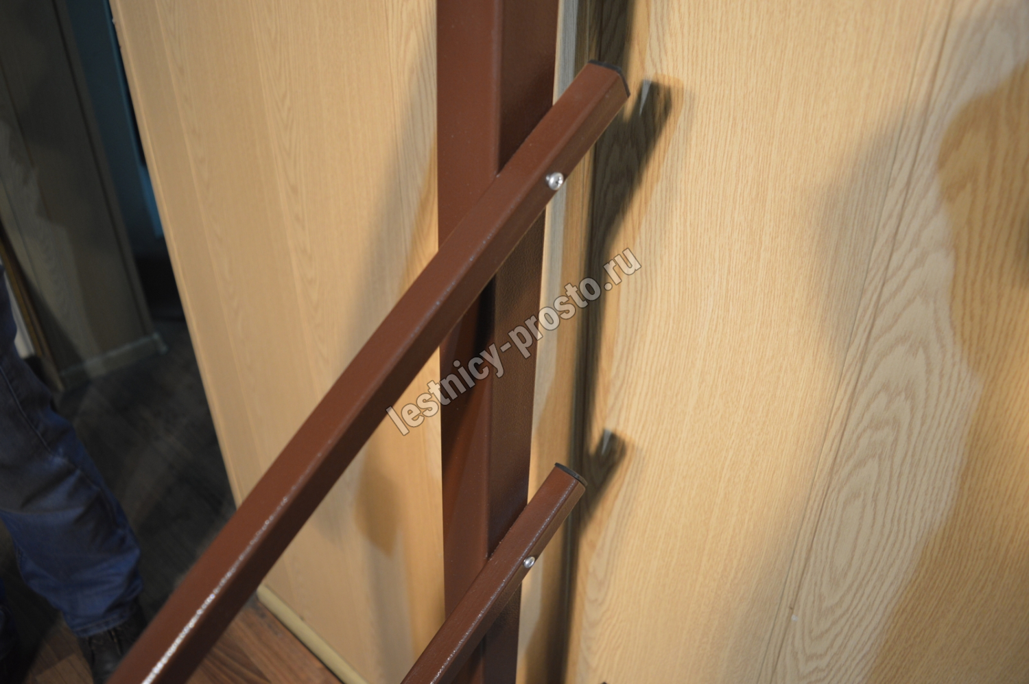 Ступени лестницы состоят из металлической рамки, обеспечивающей необходимую прочность, и покрытия из террасной доски ДПК (древесно-полимерный композит). Ступени не боятся воды и мороза, не теряют со временем свой внешний вид и не требуют ухода.