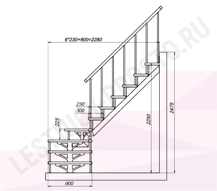 Лестница PROSTO MONO Г-образная h247.5 см, ступени хвоя