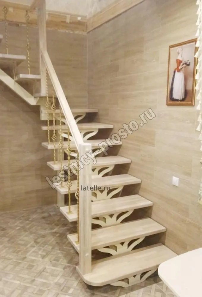 Лестница PROSTO MONO Г-образная h315 см, ступени лиственница