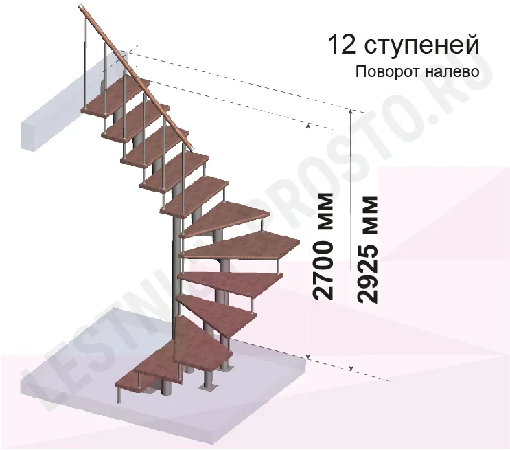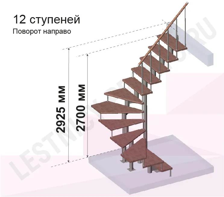 Высота лестницы 2700 - 2925 (12 ступеней) мм
