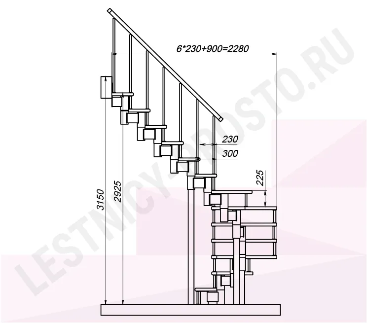 Схема и расчет указаны для шага 225 мм - мы рекомендуем эту высоту шага, как оптимальную для комфортного подъёма и экономии бюджета.