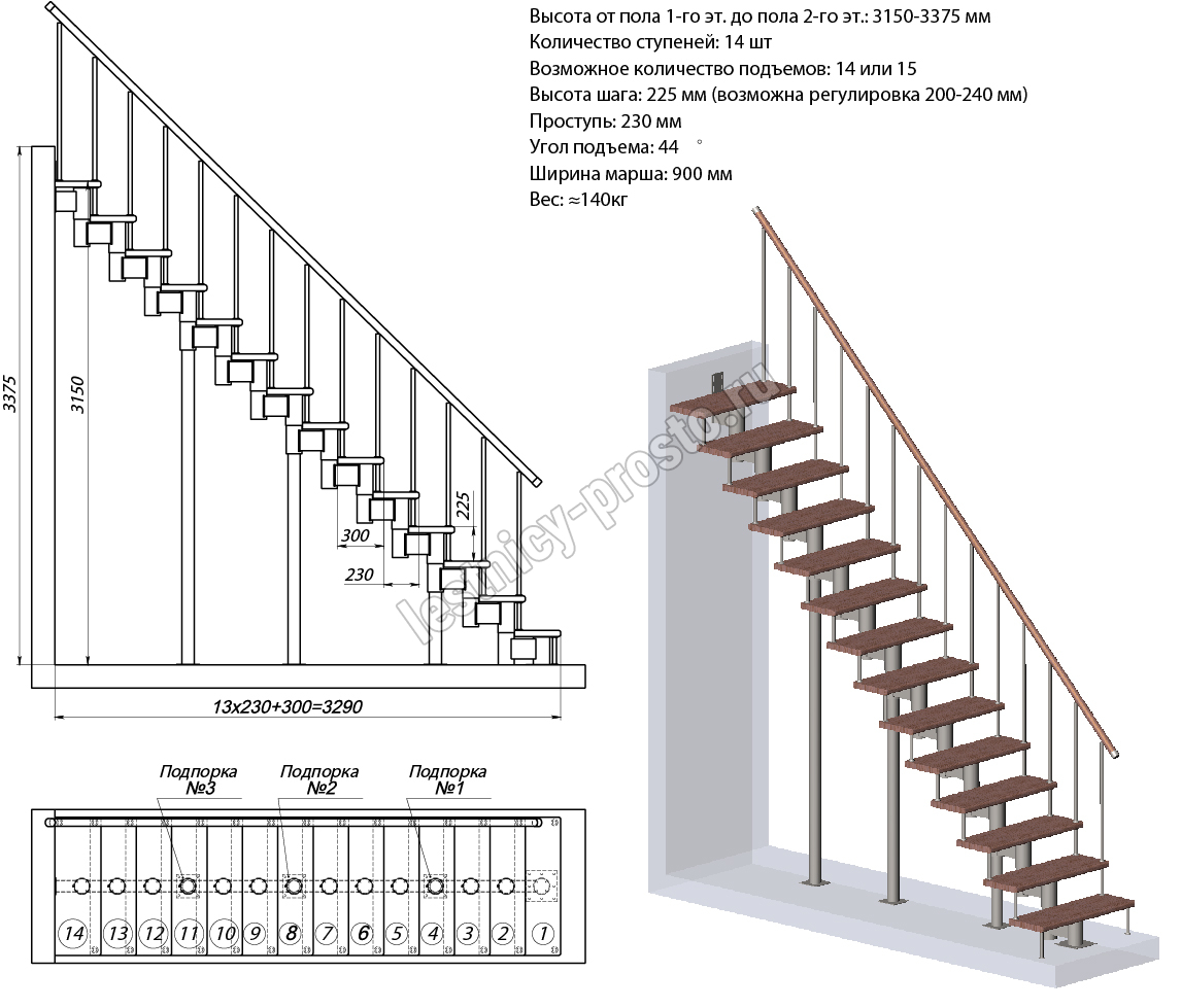 Стоимость указана за модульный каркас и ступени из лиственницы (ограждение покупается отдельно!)