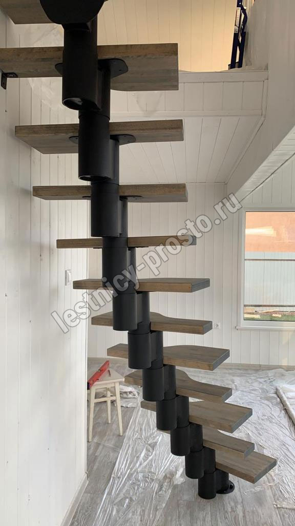 Лестница Prosto Urban Black гусиный шаг 700 мм, h216-312 см (12 ступеней), ясень