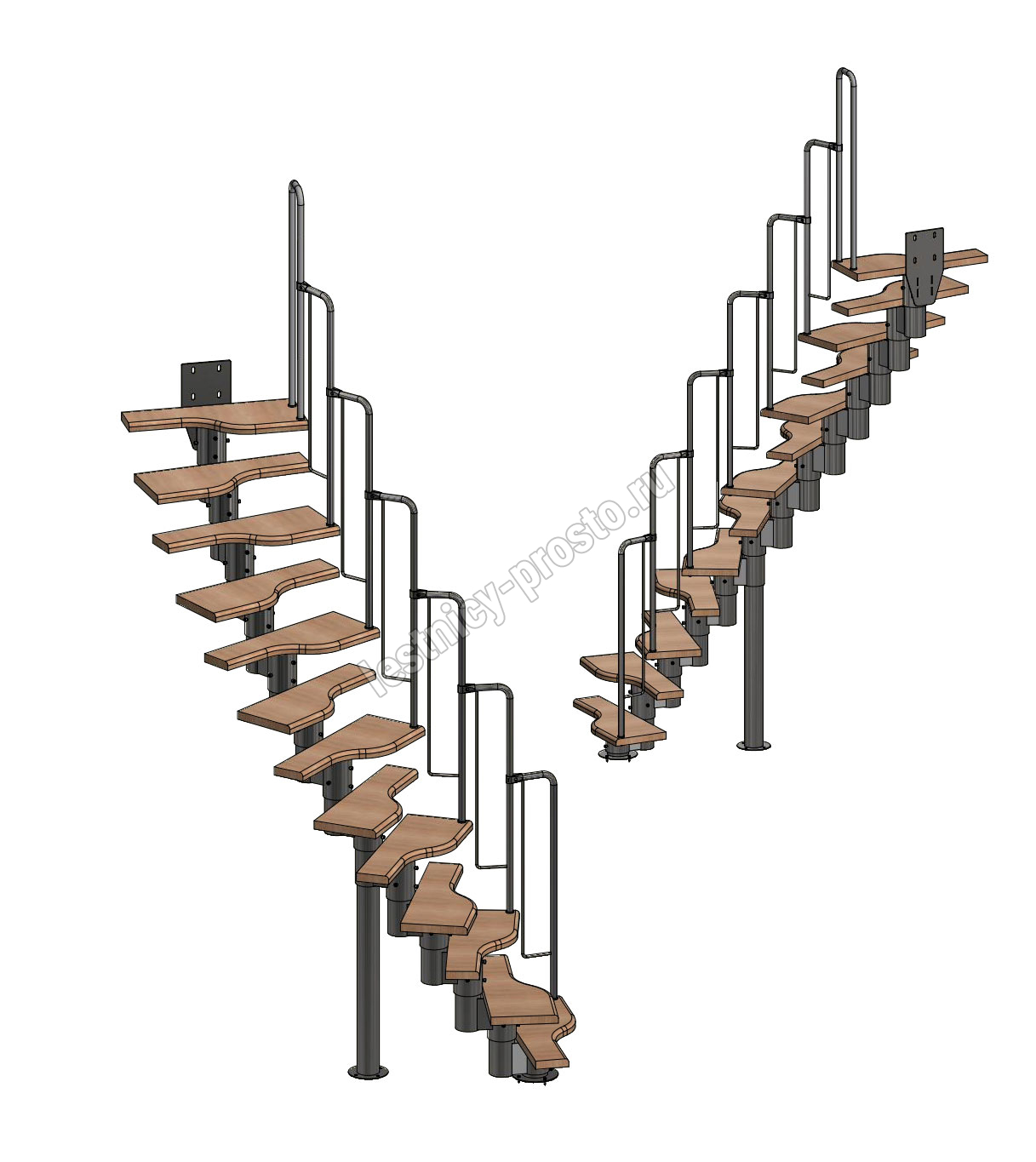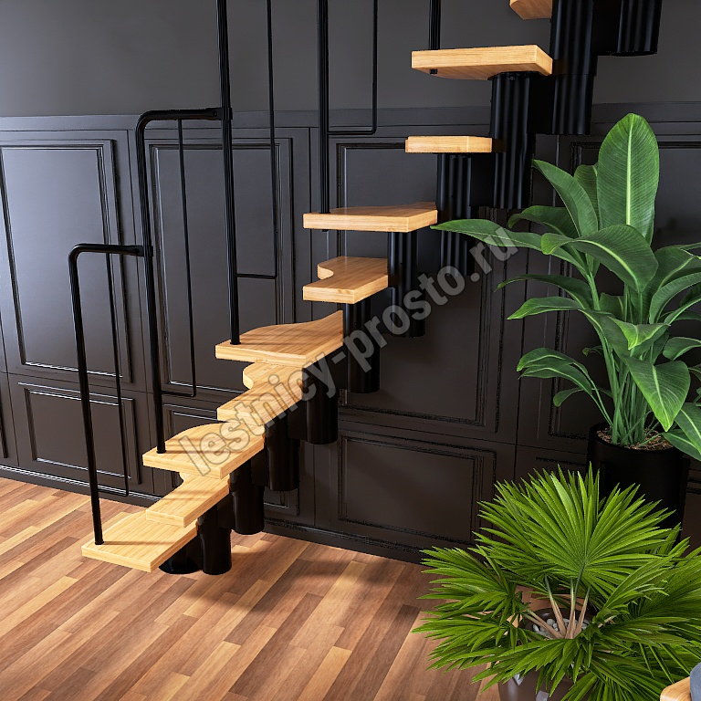 Лестница Prosto Urban Black гусиный шаг 700 мм, h234-336 см (13 ступеней), берёза мультиплекс