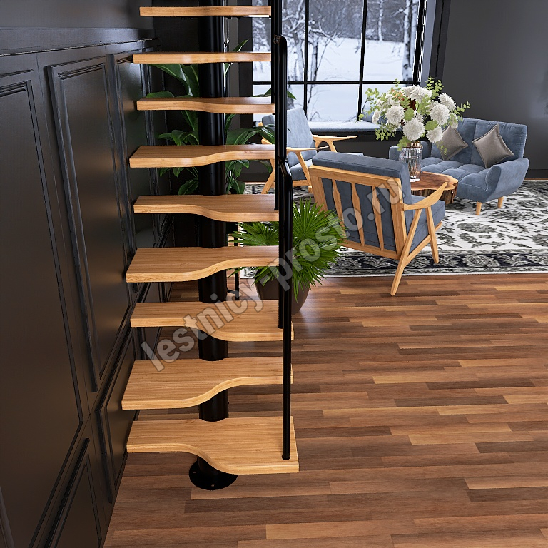 Лестница Prosto Urban Black гусиный шаг 600 мм, h216-312 см (12 ступеней), ясень