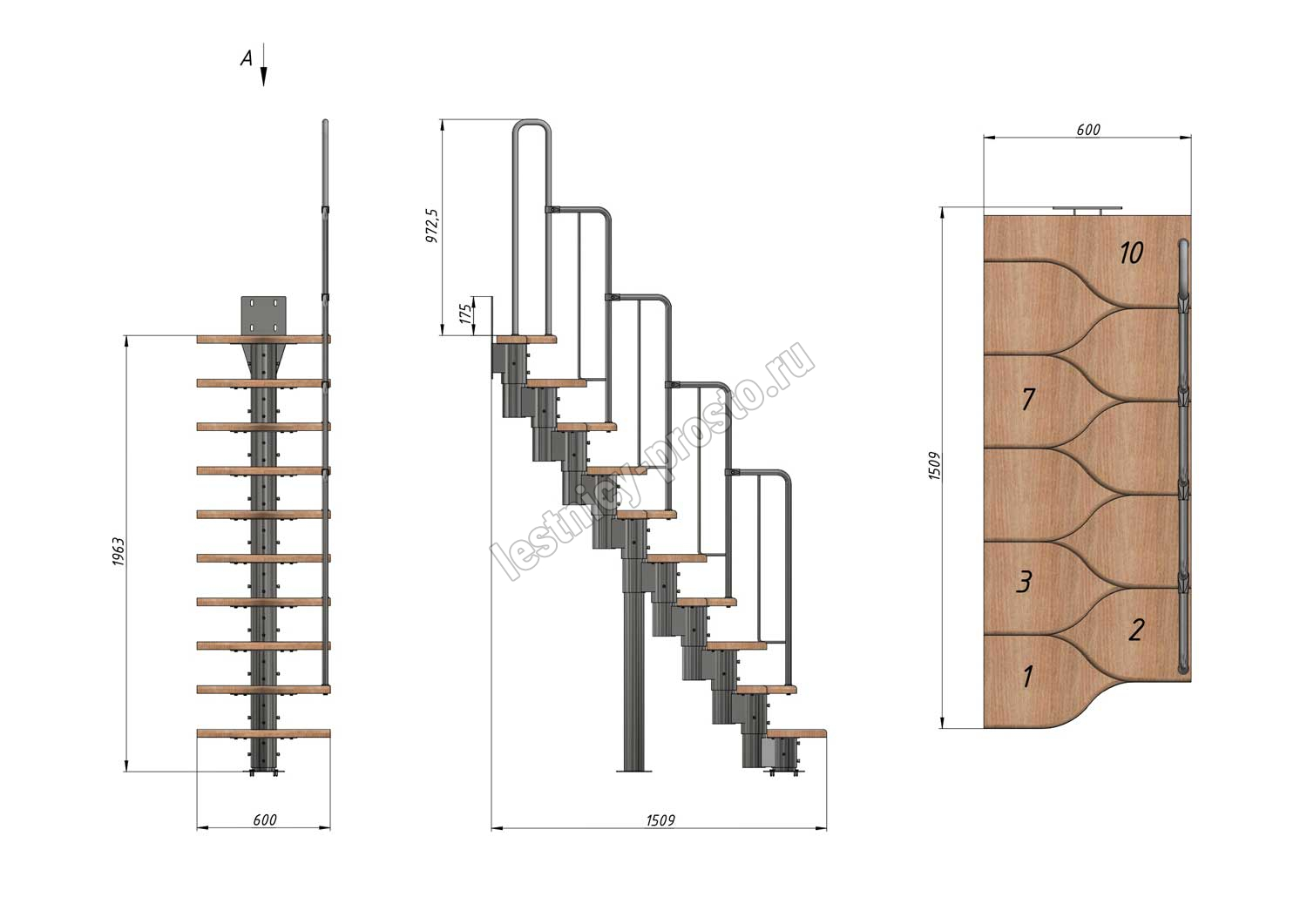 Лестница Prosto Urban Black гусиный шаг 600 мм/ Ступени из берёзы мультиплекс