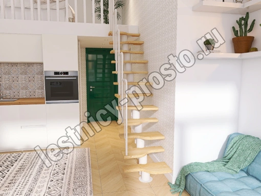Лестница Prosto Urban White гусиный шаг 700 мм, h234-336 см (13 ступеней), ясень