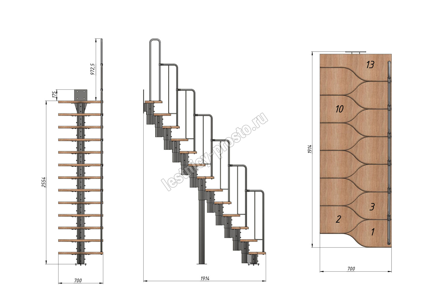 Лестница Prosto Urban White гусиный шаг 700 мм/Ступени из срощенного ясеня