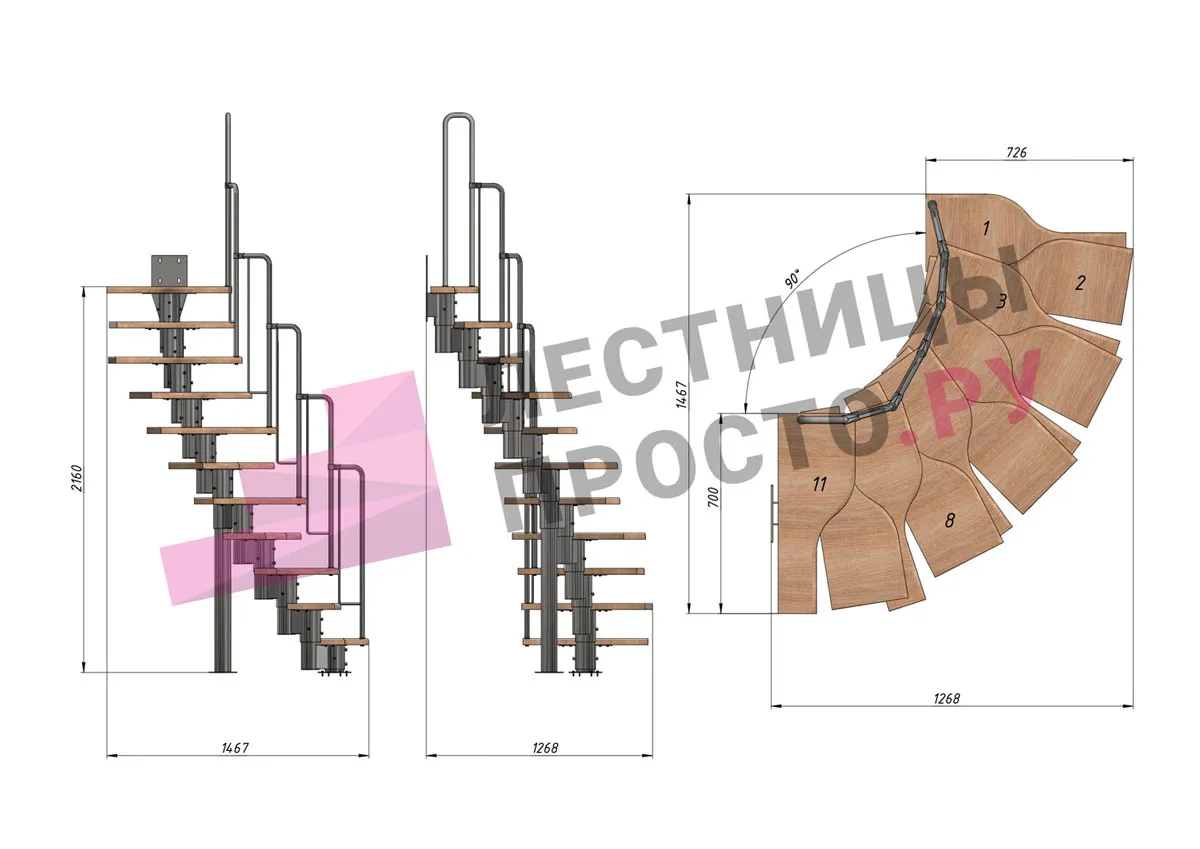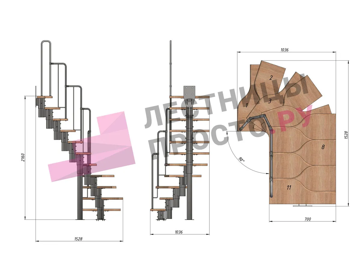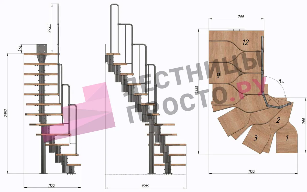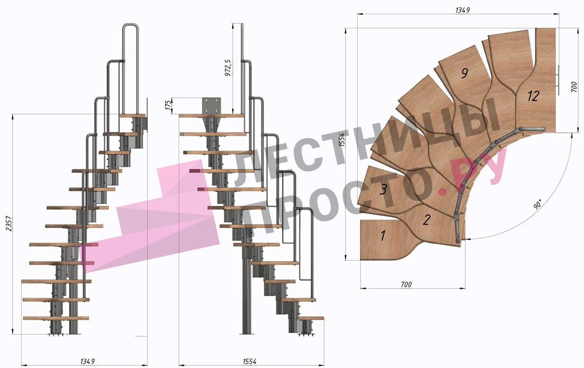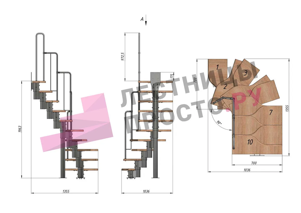 Высота лестницы 1980 - 3600 мм