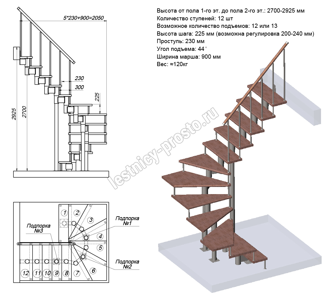 Количество ступеней до поворота - может быть любым , по запросу мы рассчитаем стоимость и сделаем чертеж-схему в соответствии с вашими параметрами. Так же, поворот лестницы может быть реализован через площадку. Звоните и пишите нам по всем возникающим вопросам: мы профессионалы в области лестниц и поможем правильно сориентироваться, не совершив ошибок!