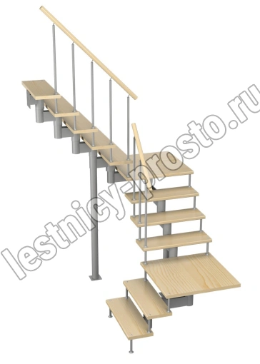 Модульная лестница Комфорт 225 2700-2820, Серый, Бук, Нержавеющая сталь