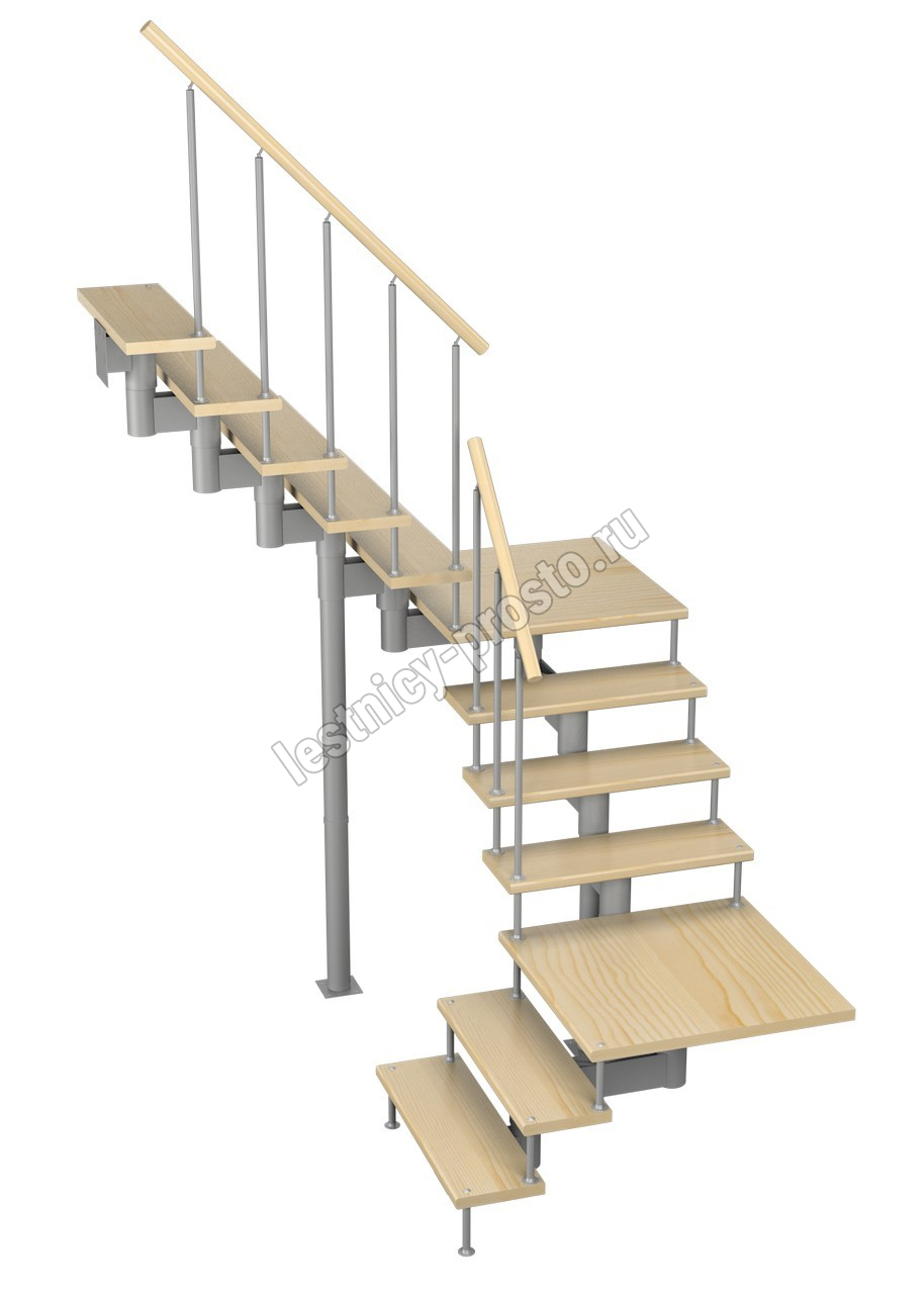 Модульная лестница Комфорт 225 2700-2820, Серый, Лиственница, Нержавеющая сталь
