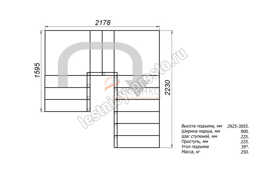 Модульная лестница Комфорт 225 2925-3055, Белый, Бук, Нержавеющая сталь