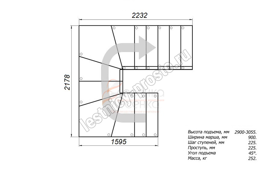Высота лестницы 2925 - 3055 мм