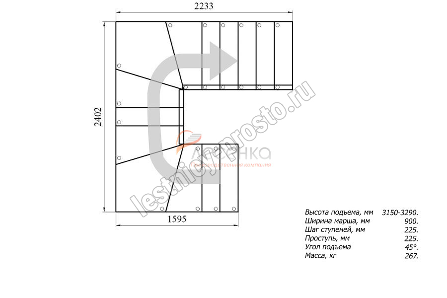 Модульная лестница Спринт 225 3150-3290, Черный, Бук, Нержавеющая сталь