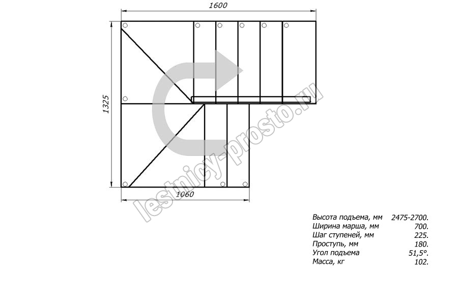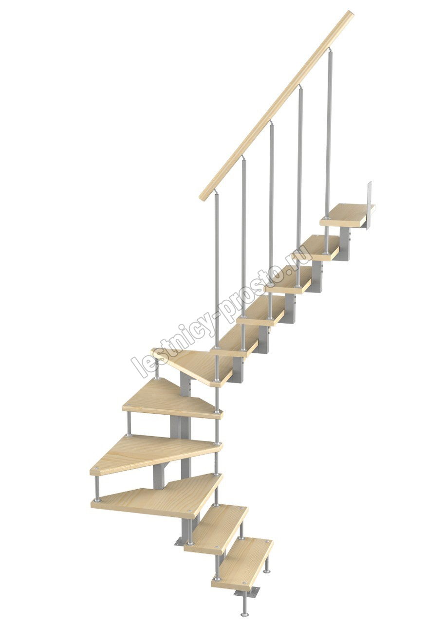 Модульная малогабаритная лестница Эксклюзив 2475-2700, Серый, Сосна, Крашеная, Без Ступений