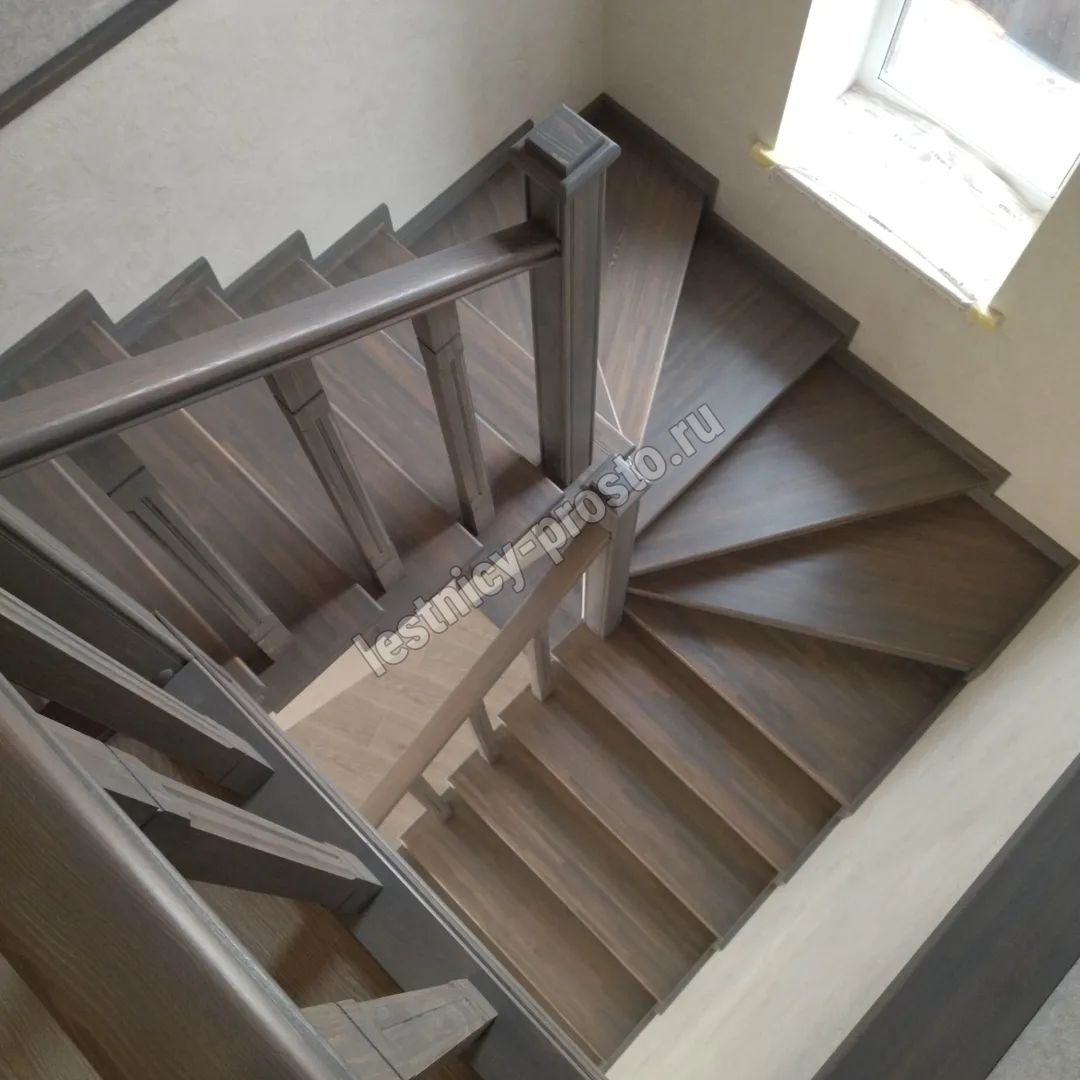 Ступени и поручень выполнены из срощенной лиственницы категории АВ.