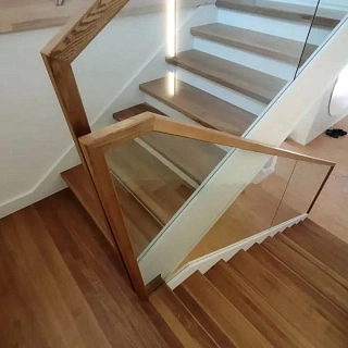 Лестница на второй этаж с ограждением из стекла LP-1-4