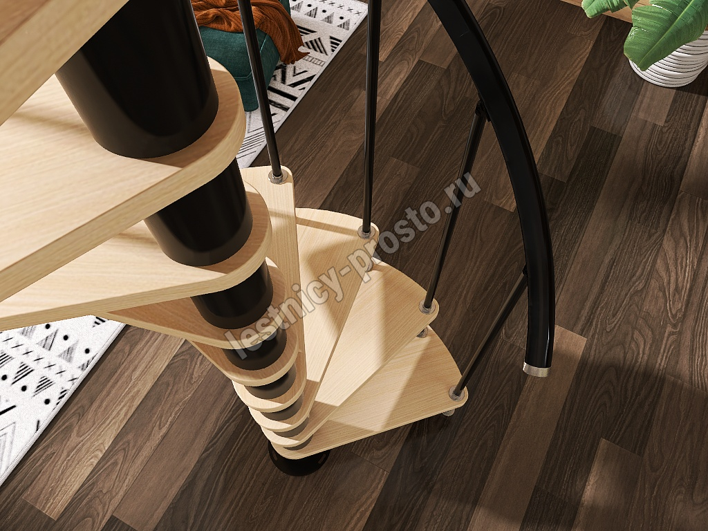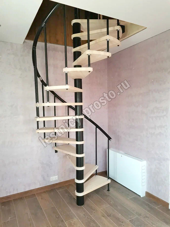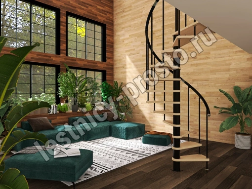 Экономит пространство. Высота ступеней регулируется с шагом 3 мм. в пределах 212-242 мм., благодаря чему, лестница прекрасно подгоняется под необходимую высоту.