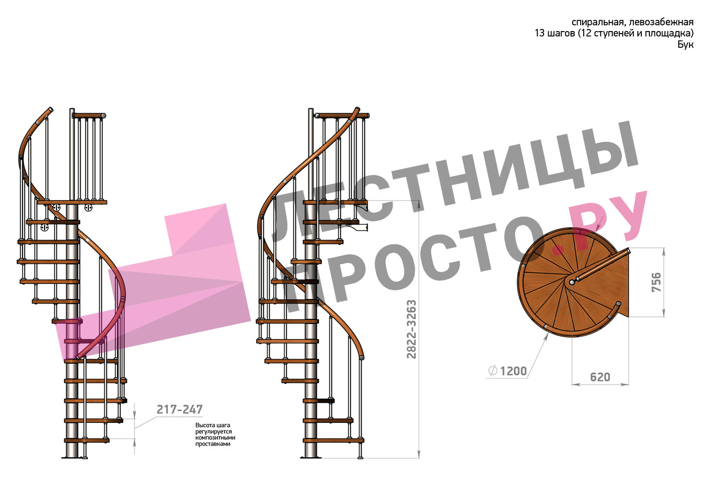 | Винтовая лестница Prosto Spiral White D120см, h325.7-369.8 см, бук |