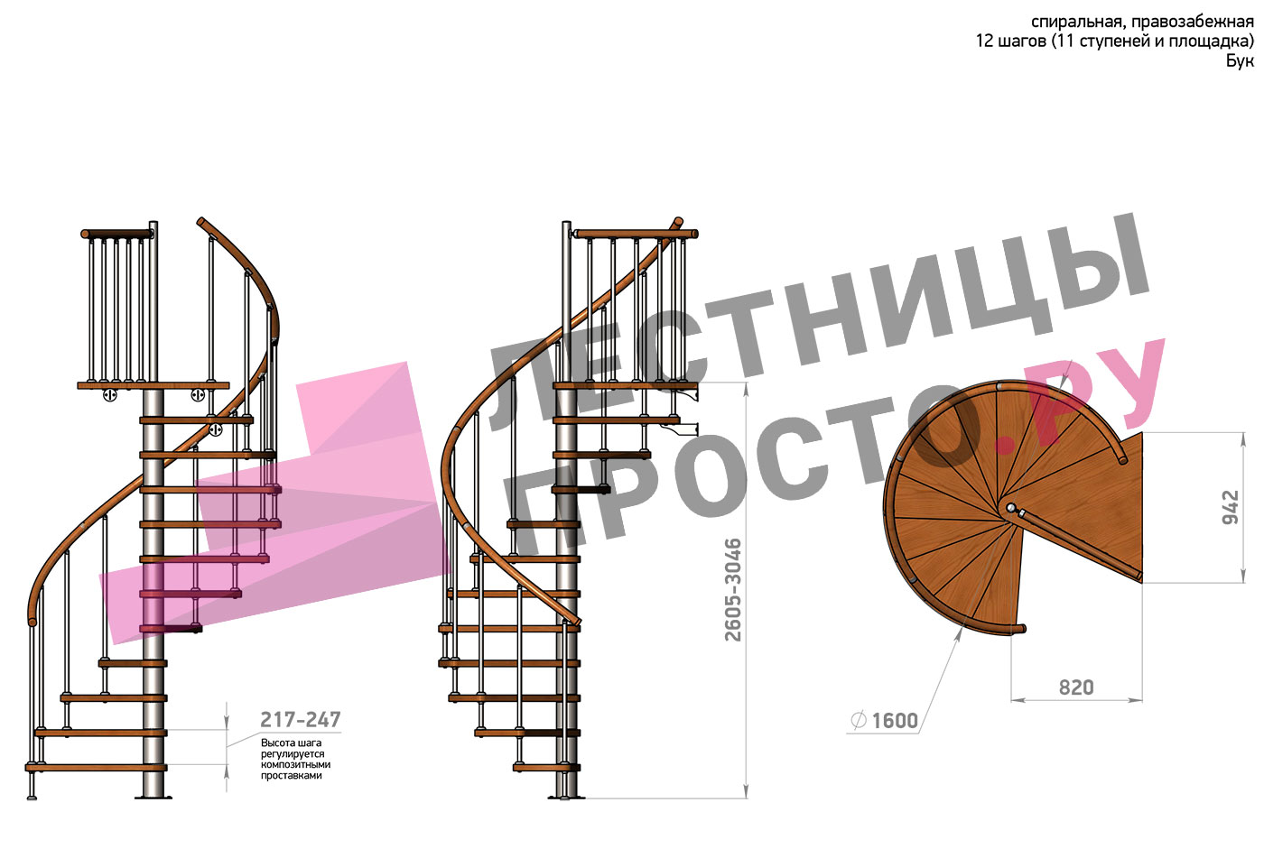 | Винтовая лестница Prosto Spiral White D160см, h325.7-369.8 см, бук |