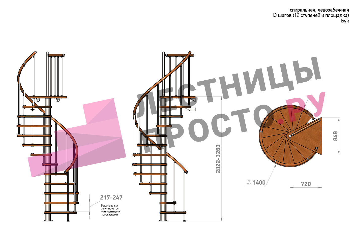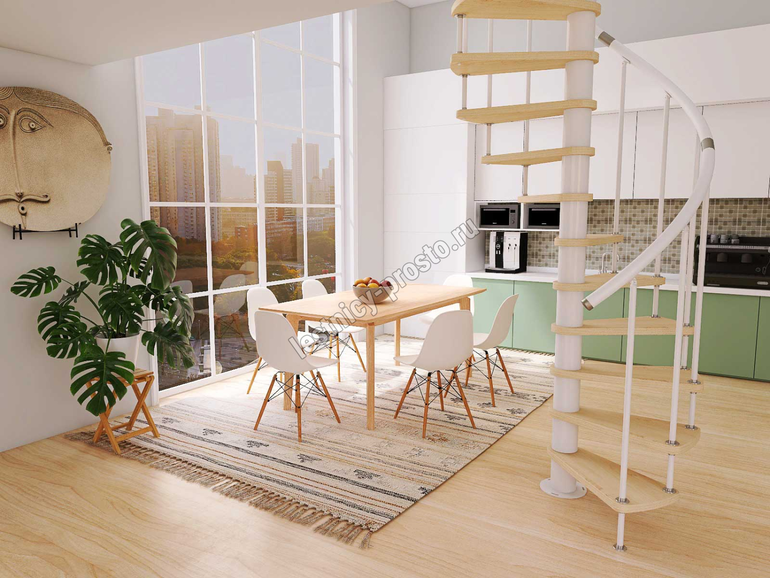 | Винтовая лестница Prosto Spiral White D140см, h282.2-326,3 см, бук |