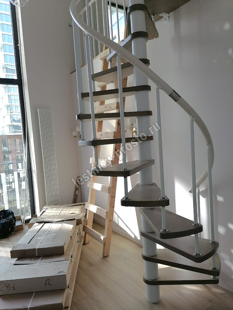 | Винтовая лестница Prosto Spiral White D120см, h303.9-348,1 см, бук |