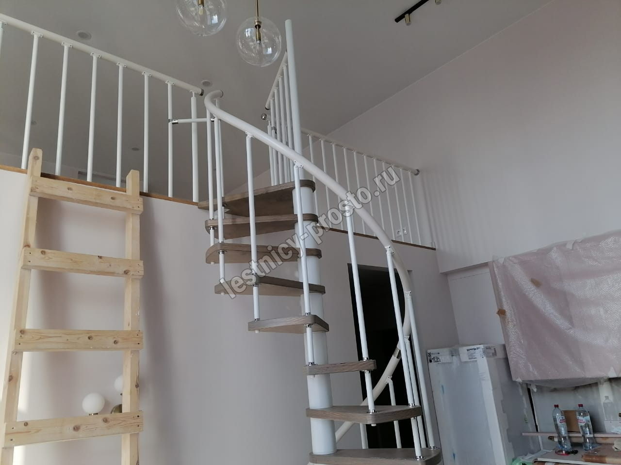 | Винтовая лестница Prosto Spiral White D140см, h325.7-369.8 см, бук |